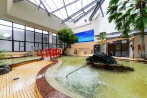 温泉浴場、温泉水の室内プール、食堂、トレーニングルーム、貸切湯などを備えた複合施設
