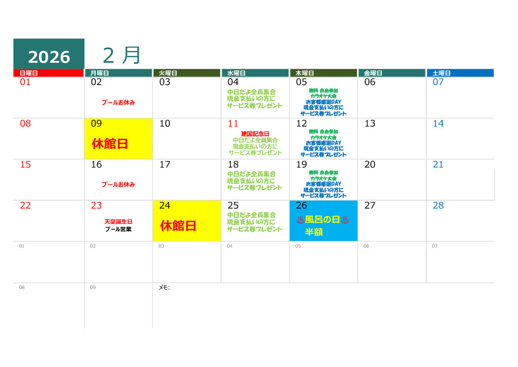 温泉定休日
